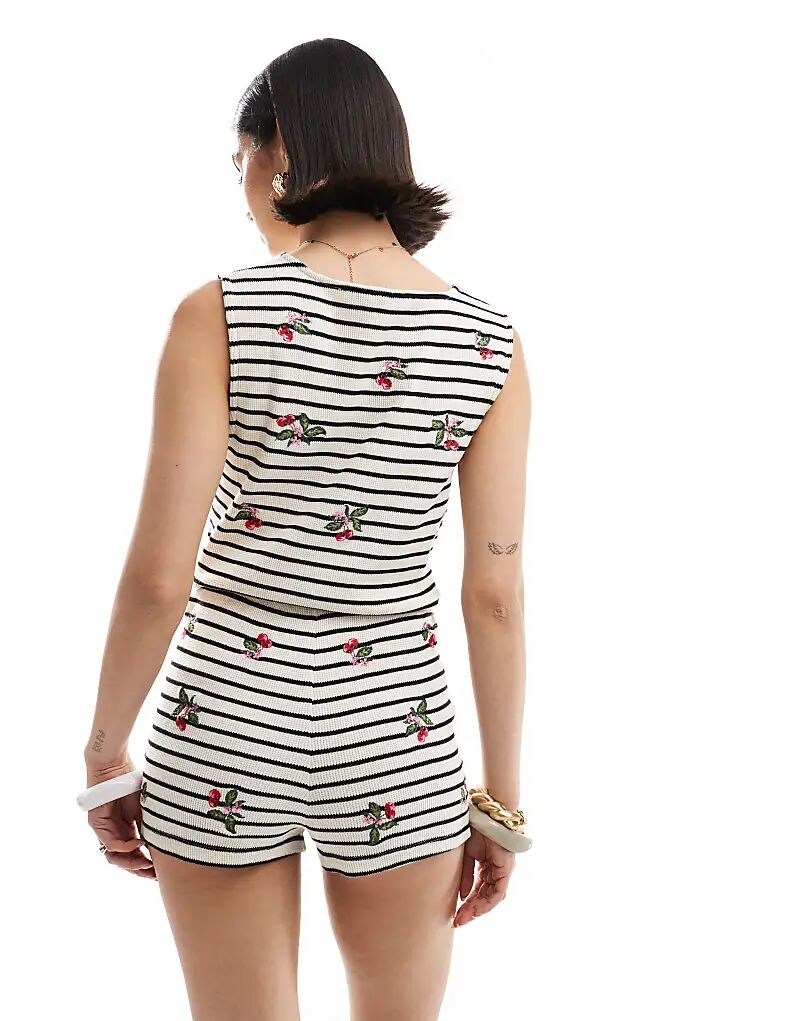 Полосатые шорты ASOS DESIGN с вышивкой вишни