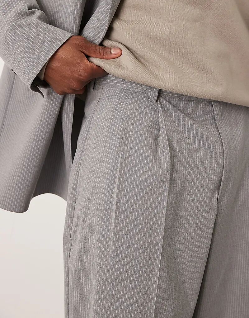 Брюки-баллоны ASOS DESIGN серого цвета в тонкую полоску