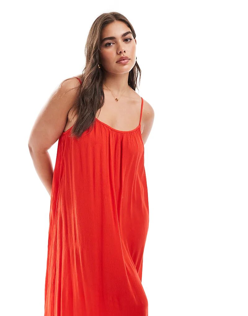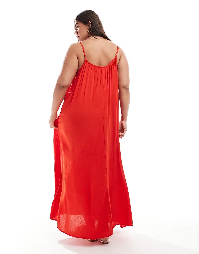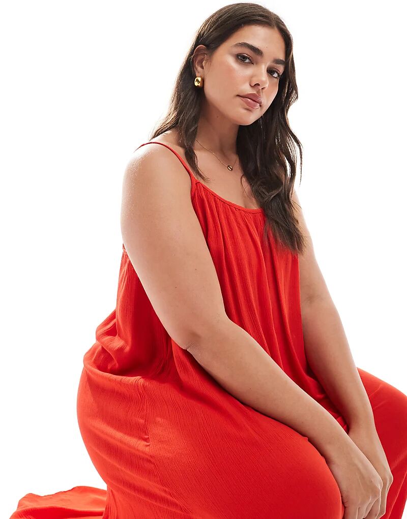 Only Curve Воздушное платье макси ками красного цвета