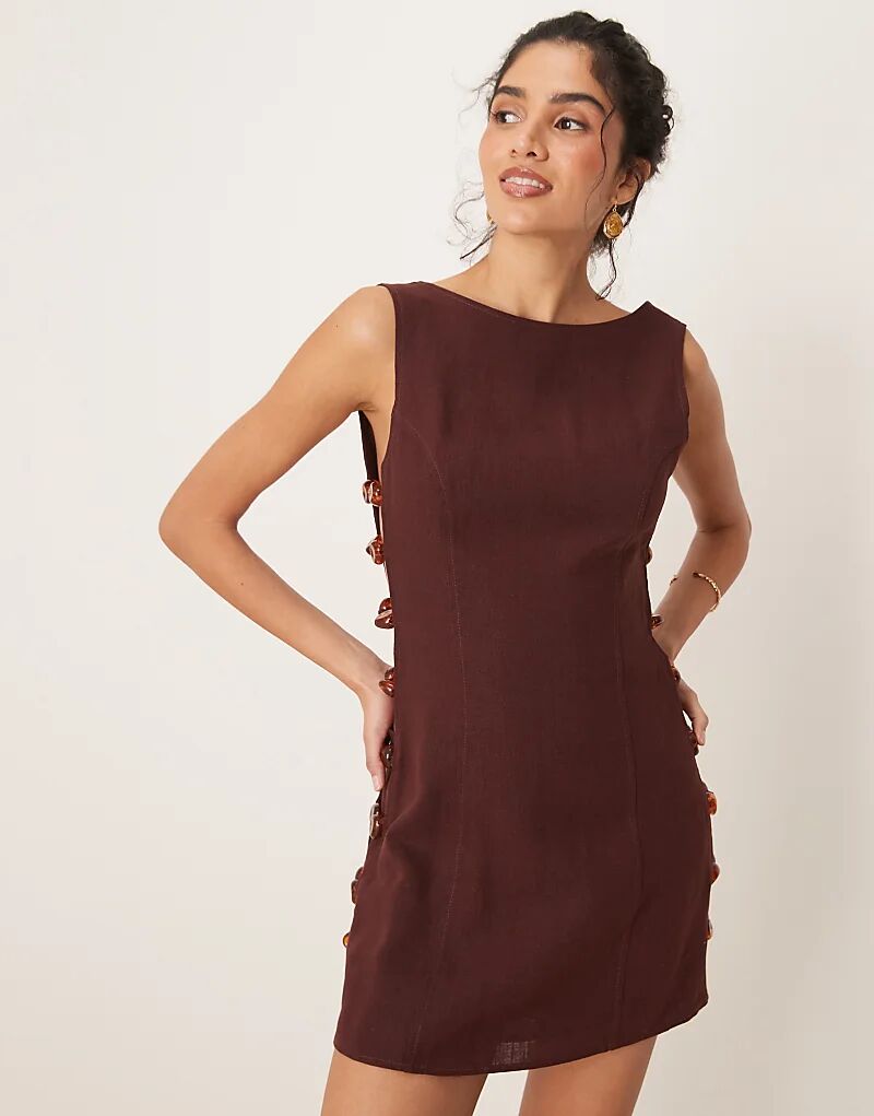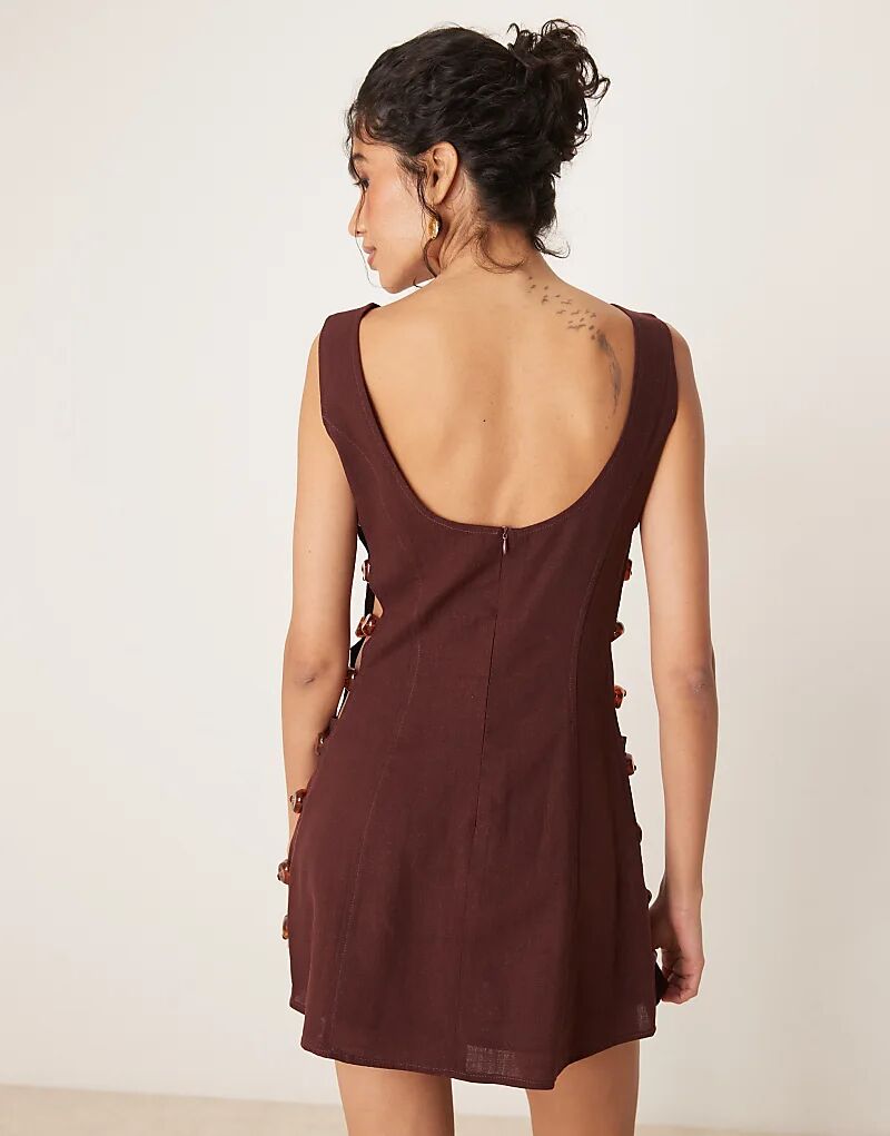 Льняное мини-платье VRG GRL tia с отделкой бисером в бордовом цвете