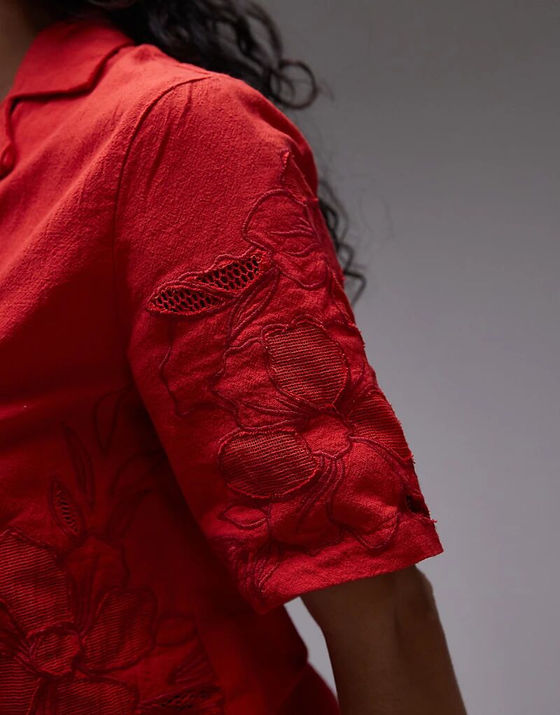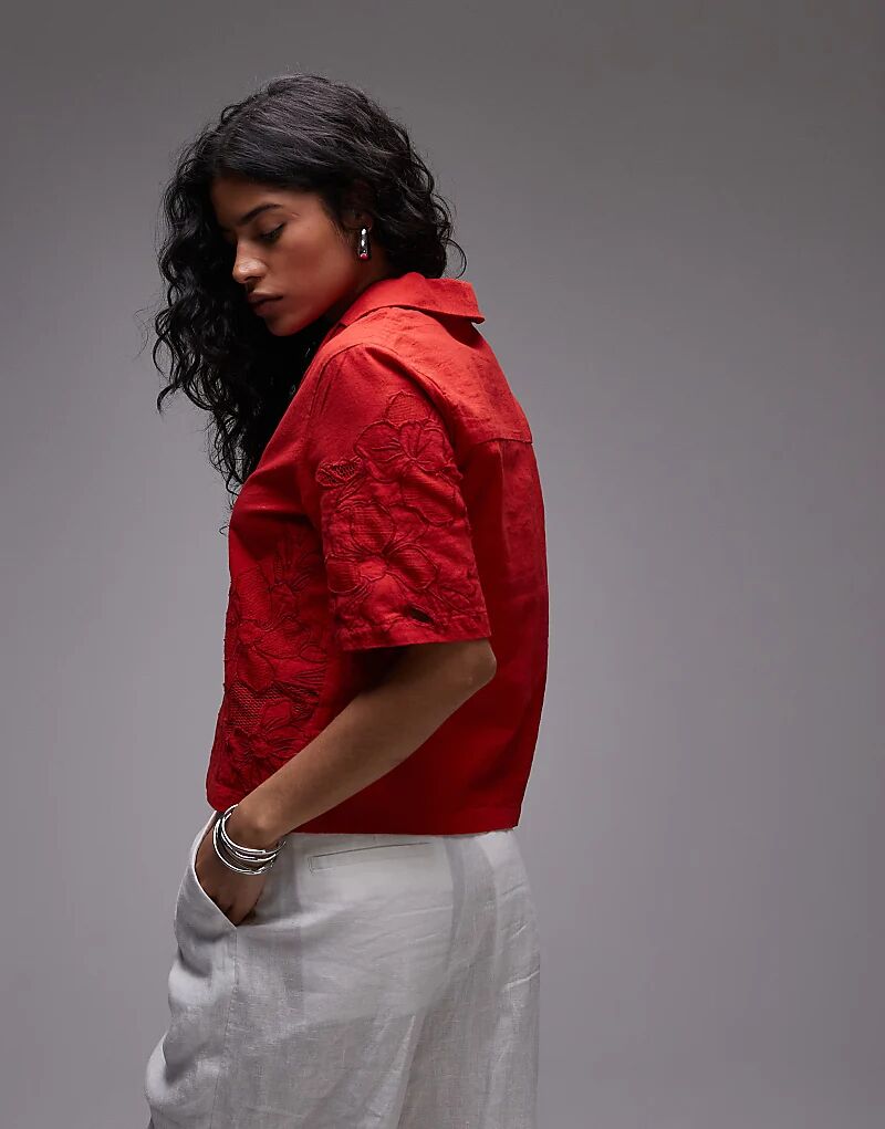 Укороченная рубашка Topshop в красном цвете — часть комплекта