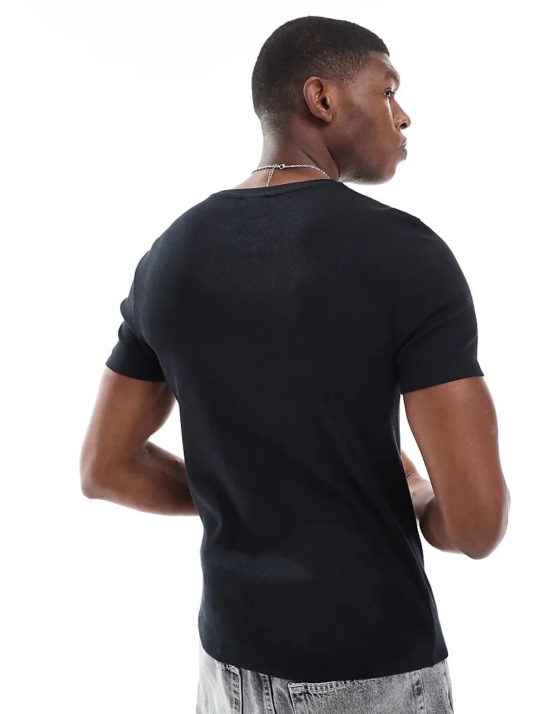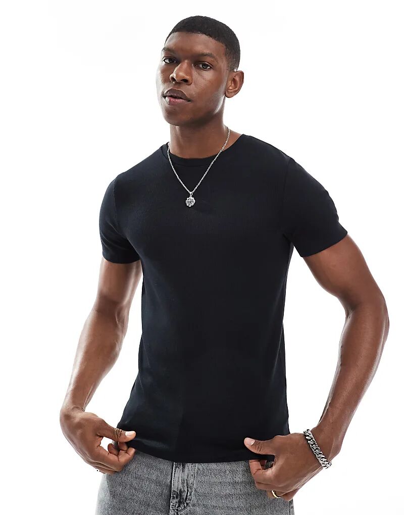Футболка ASOS DESIGN Essential Muscle Fit из черной ткани в рубчик