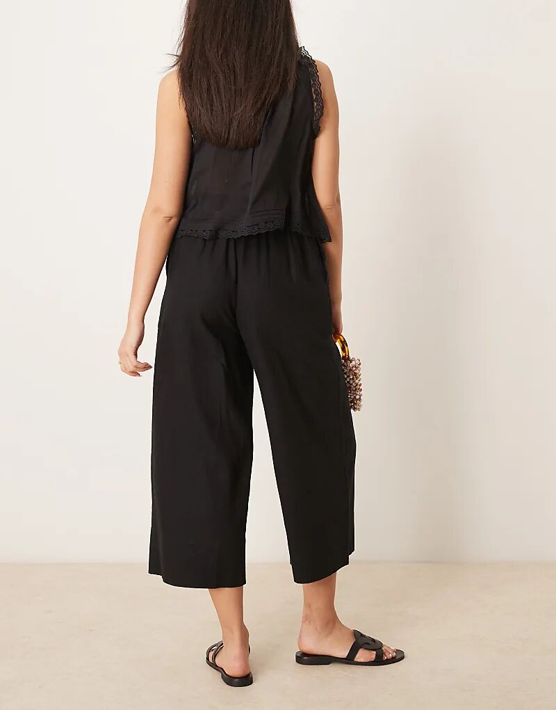 Укороченные льняные брюки New Look черного цвета 5 841₽
