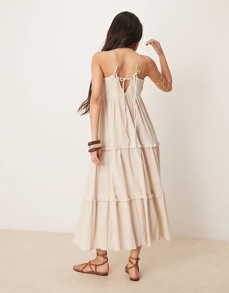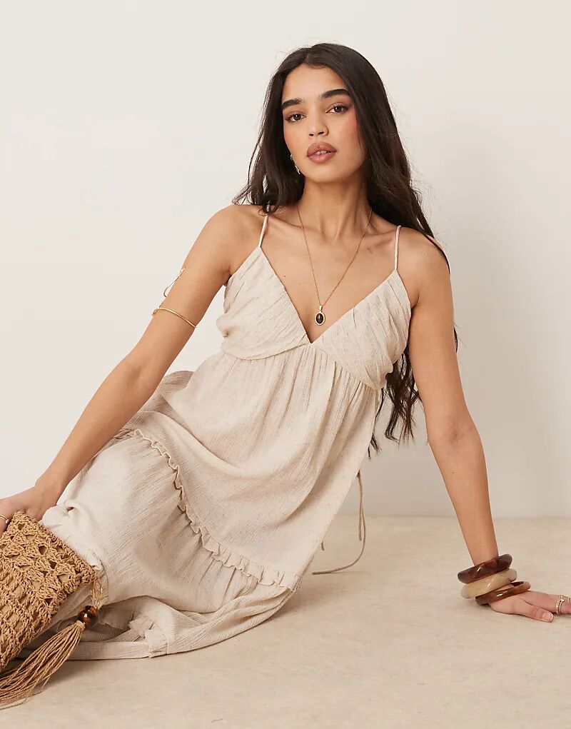 Платье макси ASOS DESIGN с жатым лифом ами в цвете овсянки
