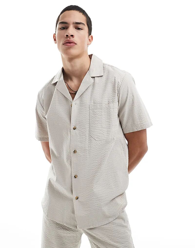 Рубашка ONLY & SONS из сирсакера бежевого цвета