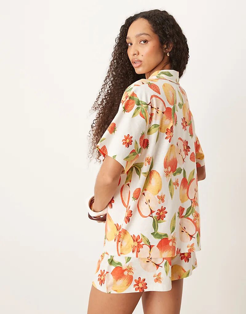 Рубашка-комбинезон из льна ASOS DESIGN с фруктовым принтом