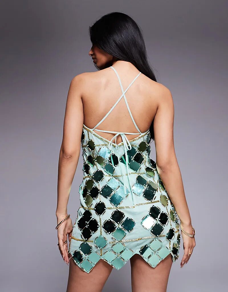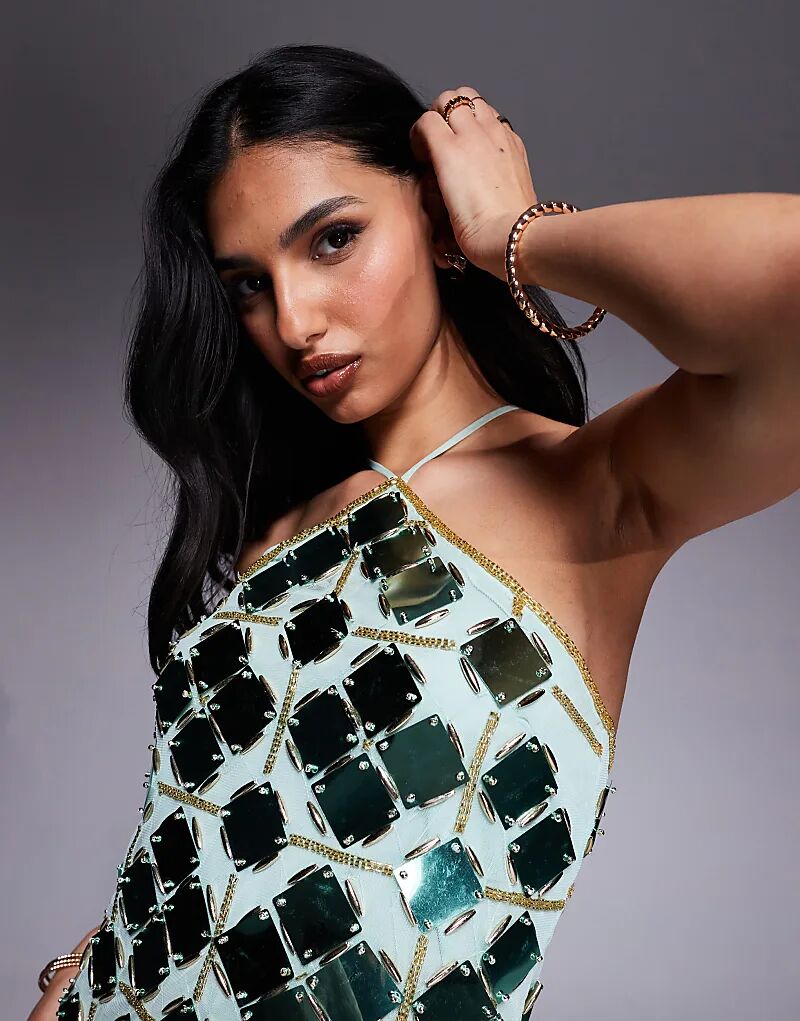 Мини-платье-халтер с сетчатым декором ASOS DESIGN зеленого цвета