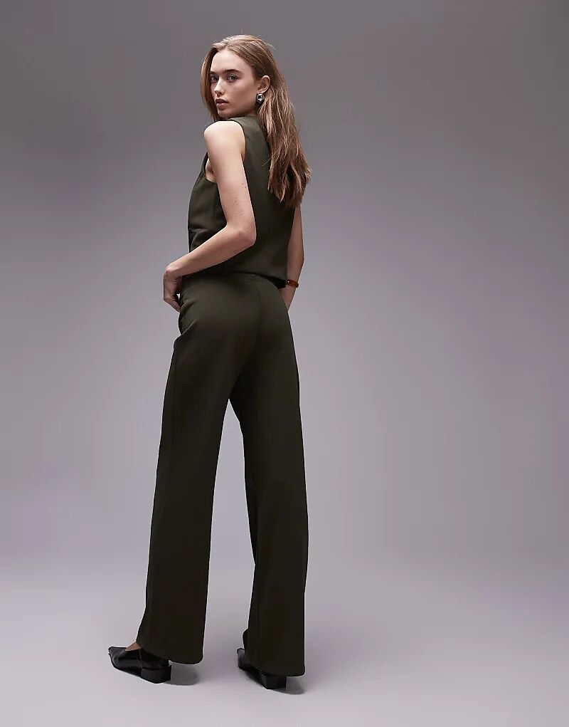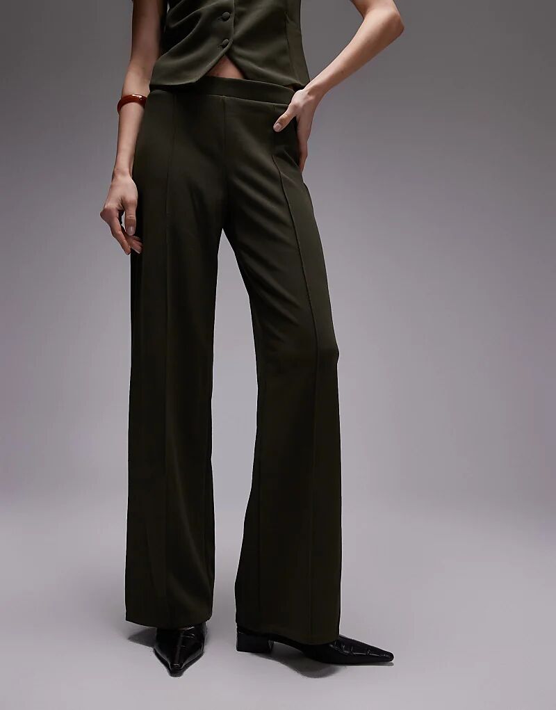 Брюки прямого кроя Mango с эластичной талией цвета хаки 4 899₽