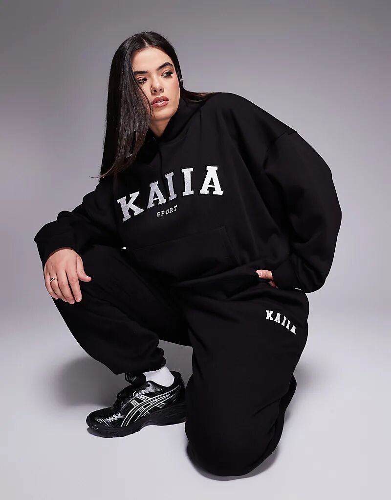 Черные джоггеры с вышитым логотипом Kaiia Plus на манжетах