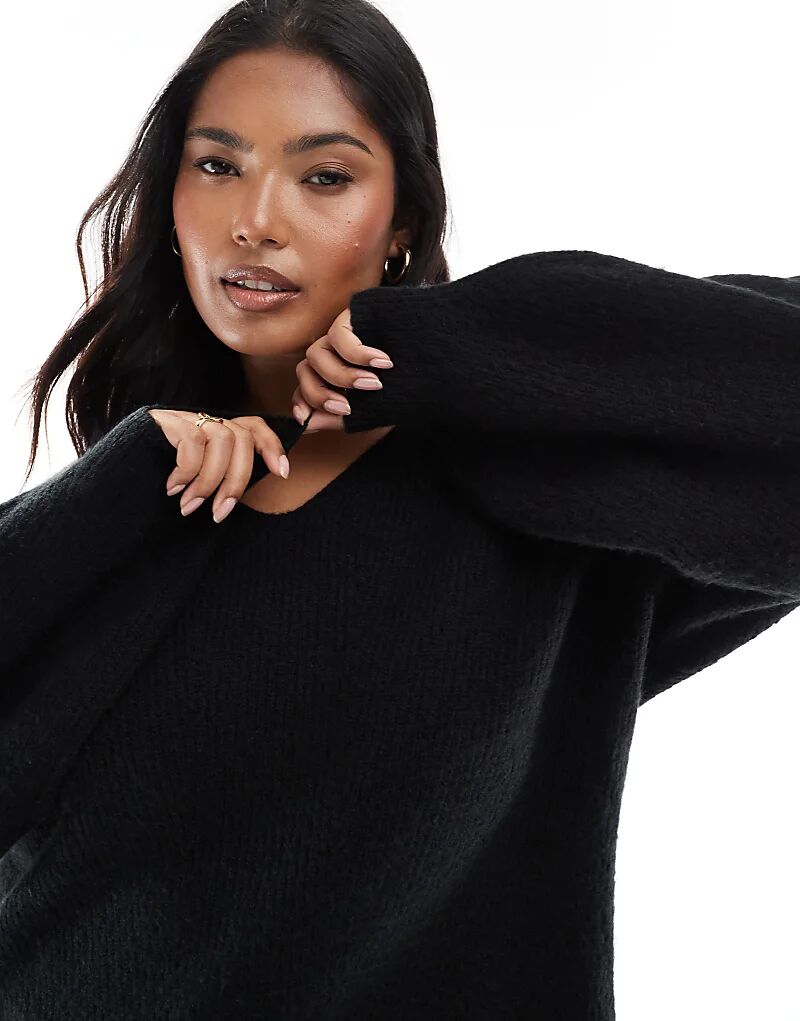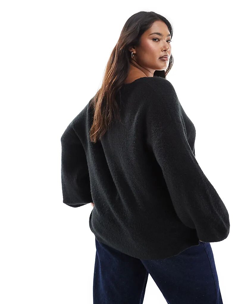 Пушистый свободный свитер Threadbare Plus с V-образным вырезом черного цвета 4 145₽