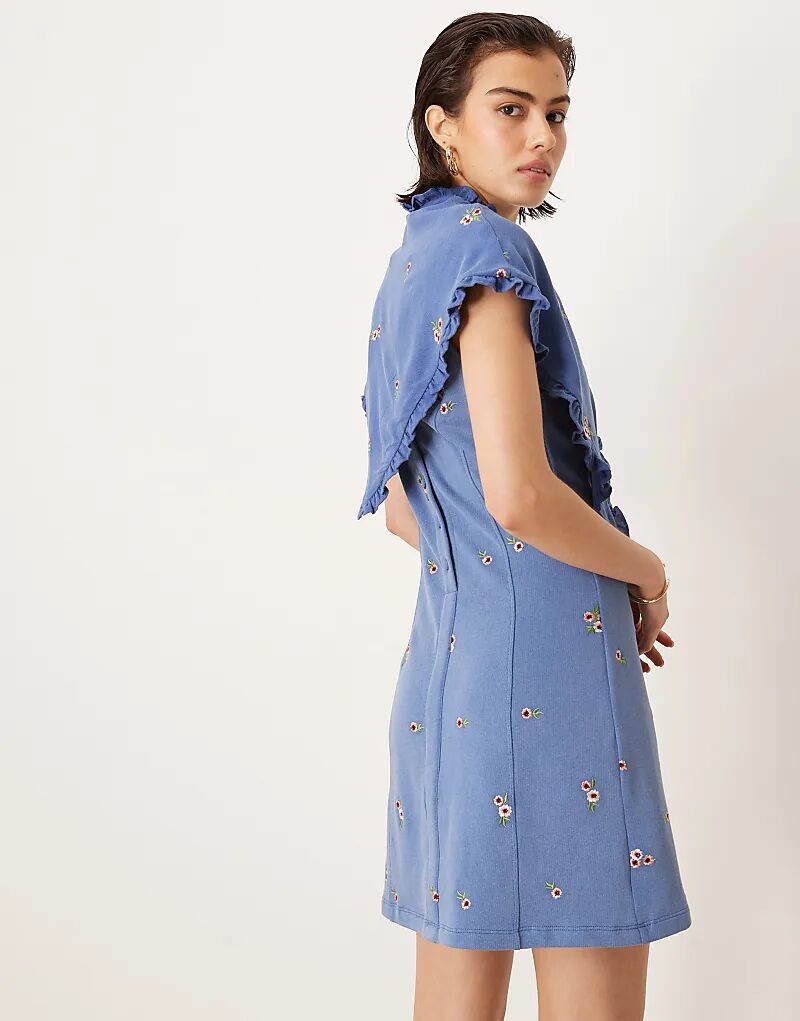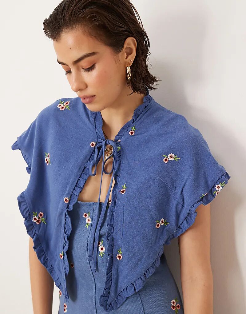 Мини-платье с вышитой накидкой ASOS DESIGN синего цвета