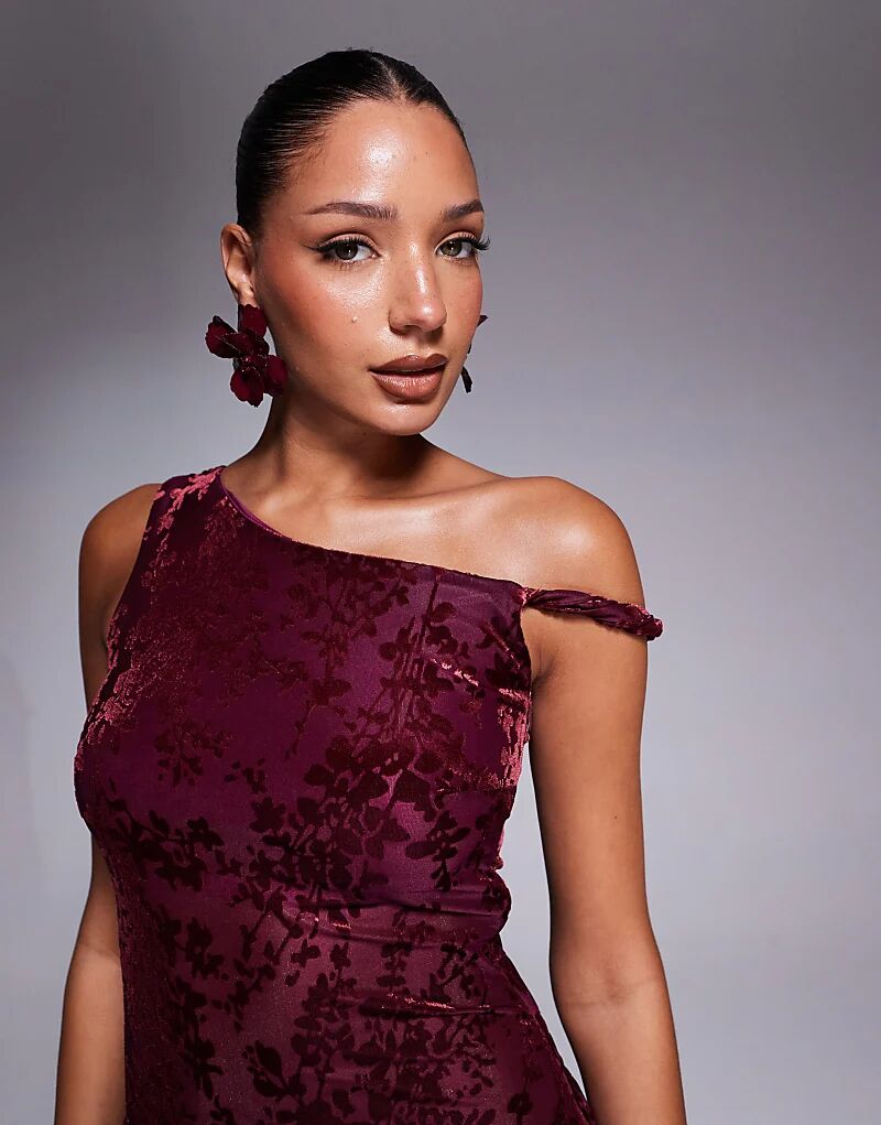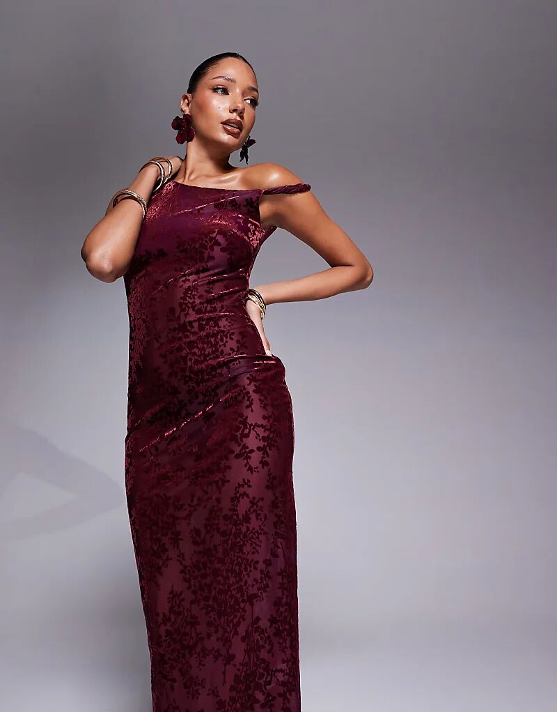Эксклюзивное платье-макси Kaiia Devore с открытыми плечами в цвете бордо
