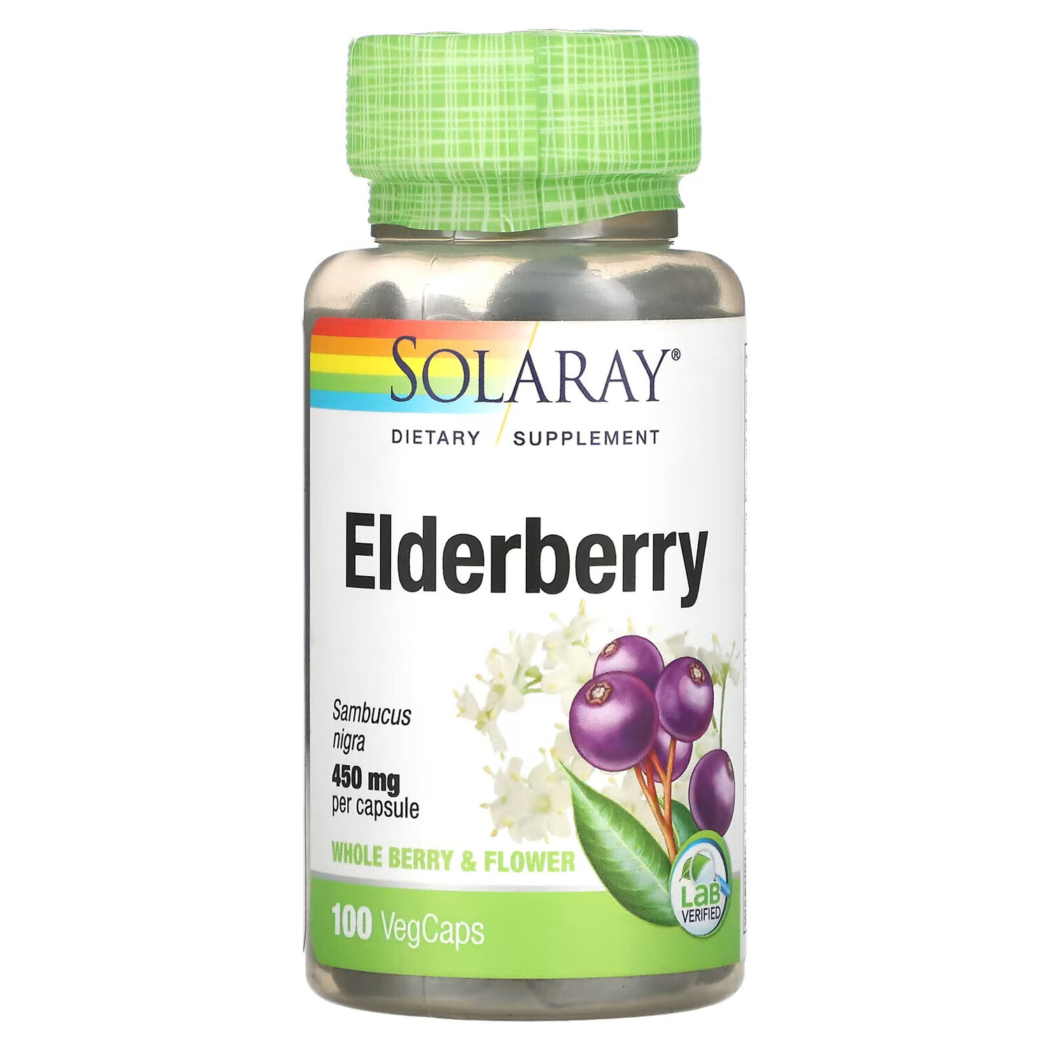 Solaray, Бузина, 450 мг, 100 капсул на растительной основе