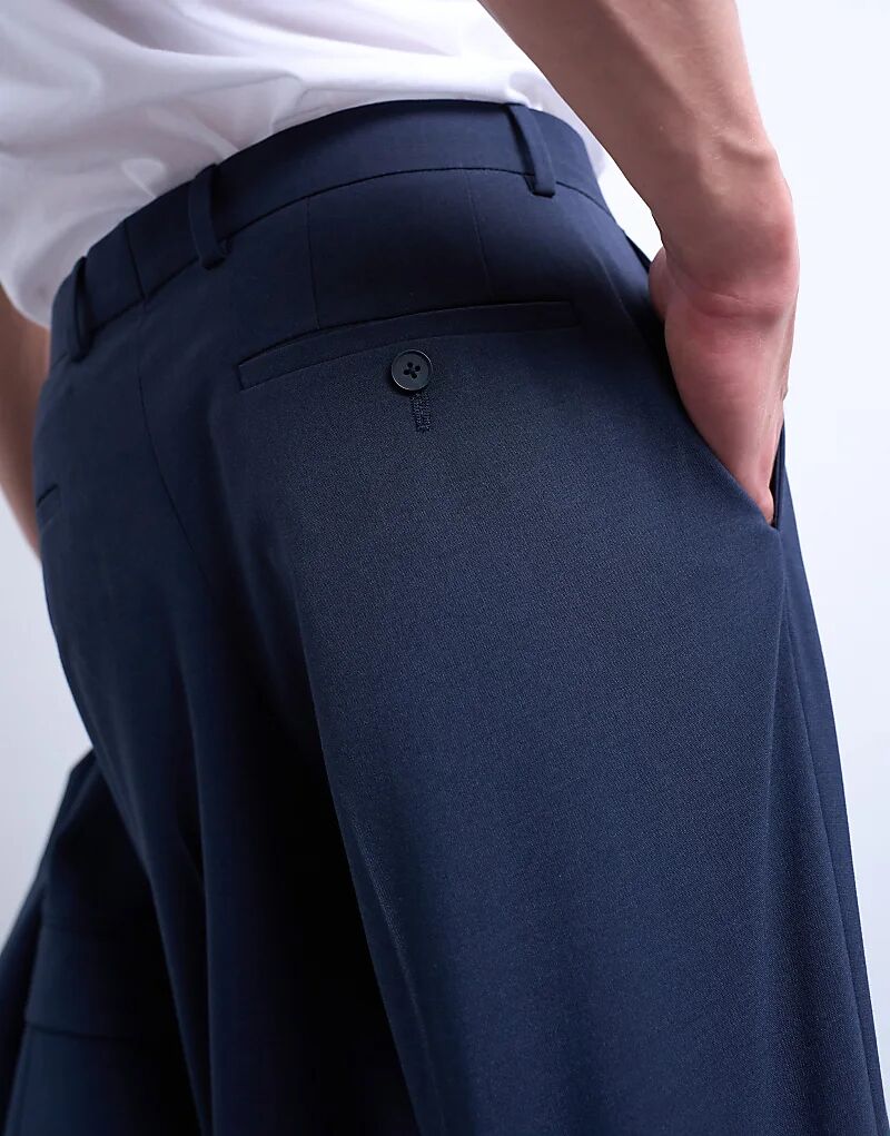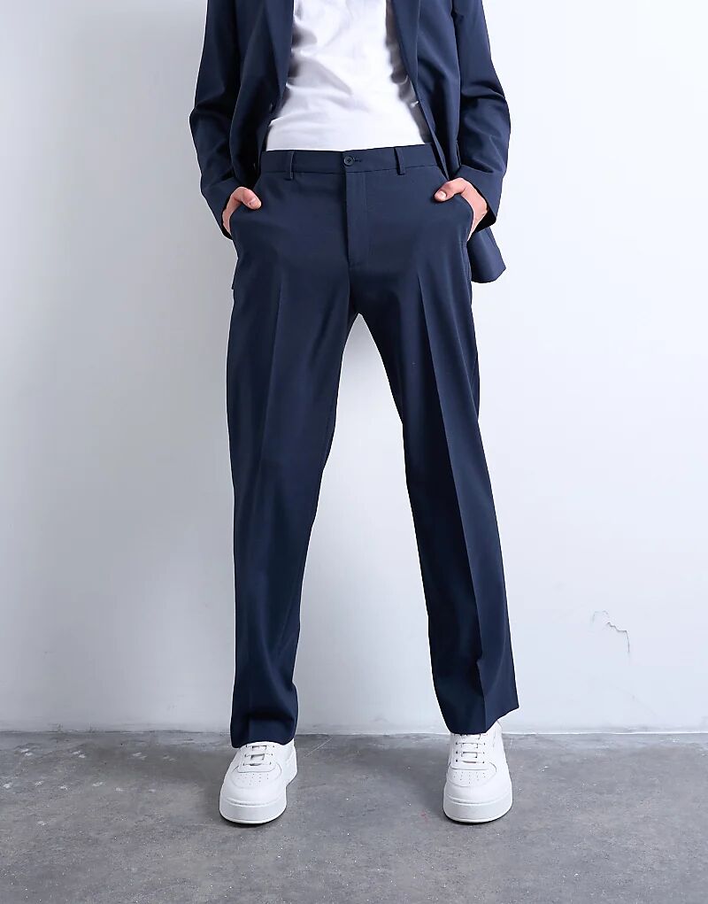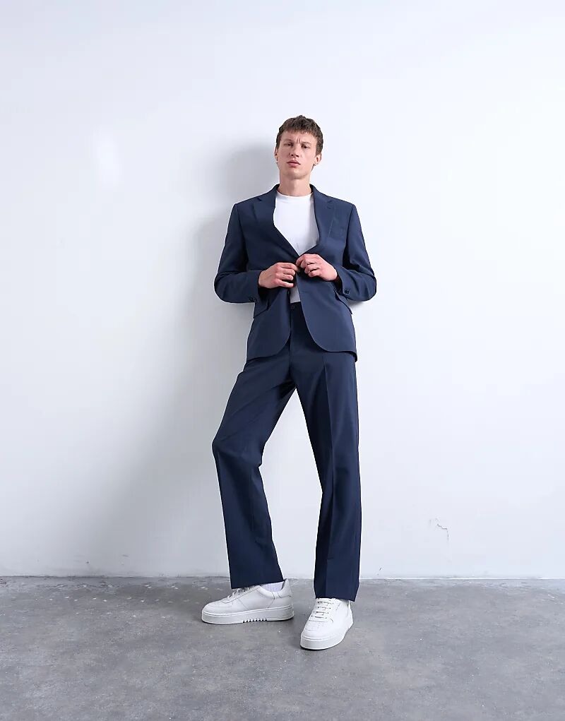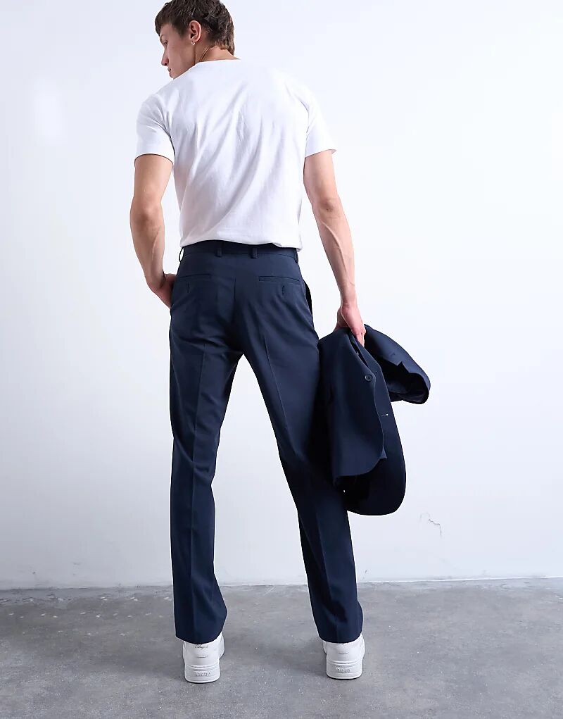 Прямые шерстяные брюки Topman в темно-синем цвете