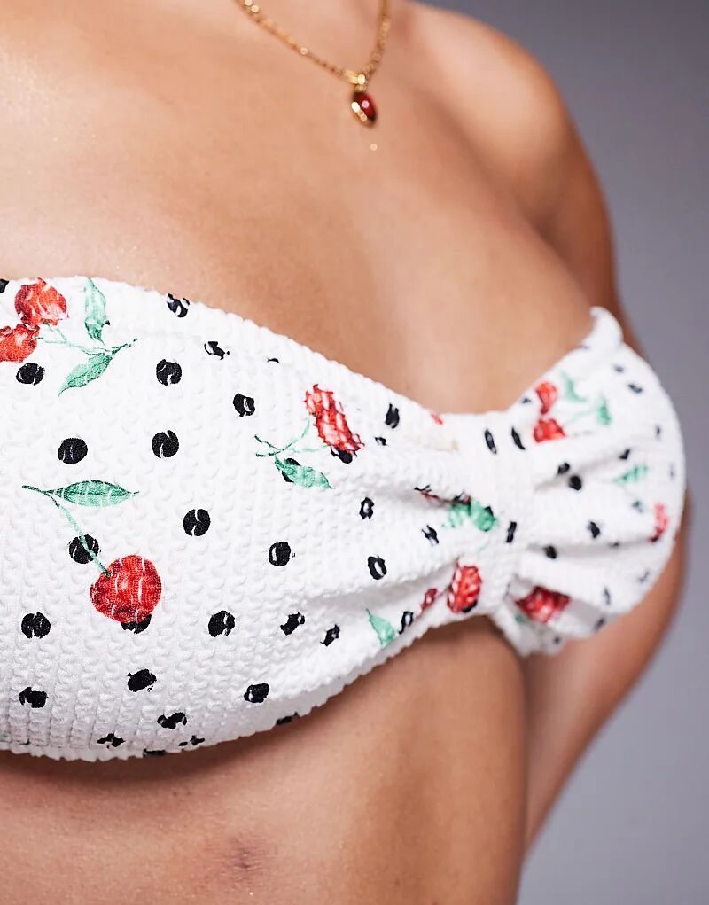 Белый бикини-топ-бандо с принтом вишни River Island