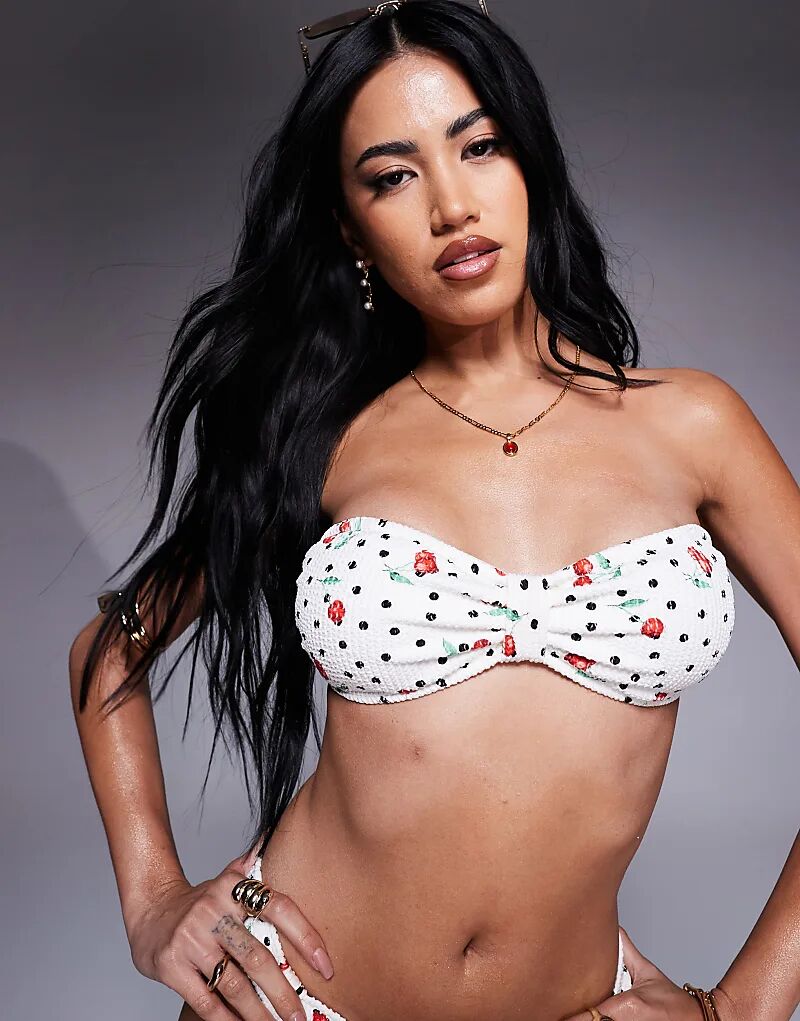 Белый бикини-топ-бандо с принтом вишни River Island 5 131₽