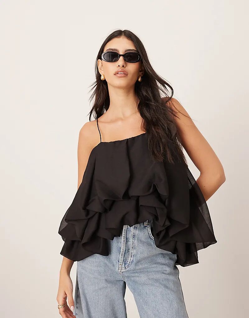 Топ ARRANGE с объемными бретельками черного цвета 7 096₽