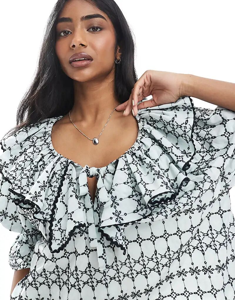 Топ ASOS DESIGN с воротником-оборкой и синей вышивкой