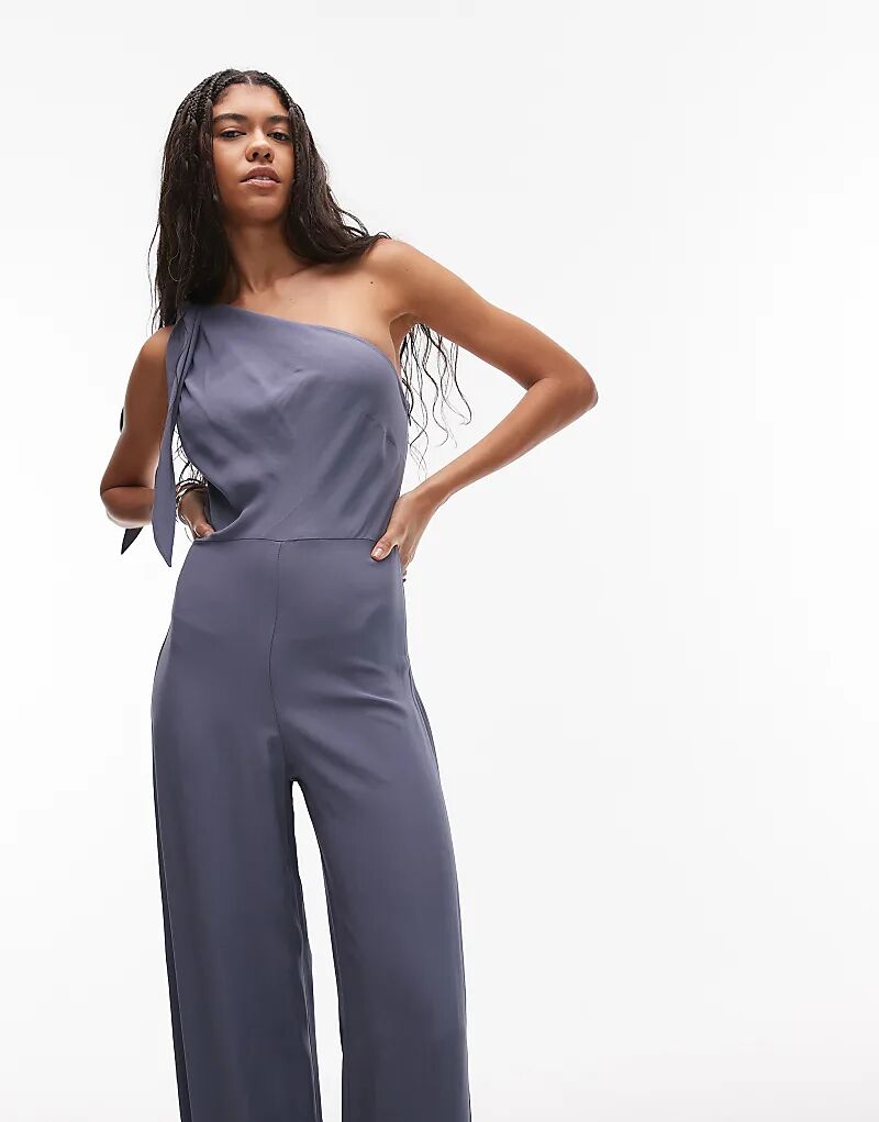 Комбинезон Mango с драпировкой на одно плечо серого цвета