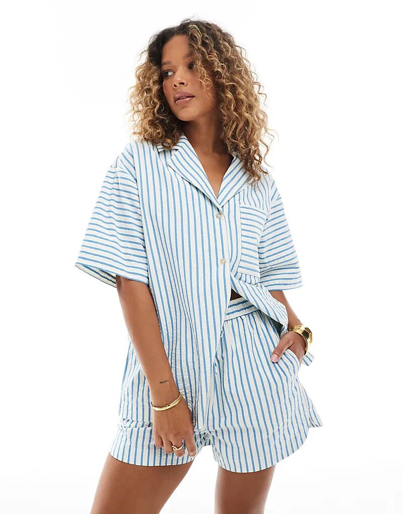 Боксеры-шорты ASOS DESIGN из сирсакера в синюю полоску