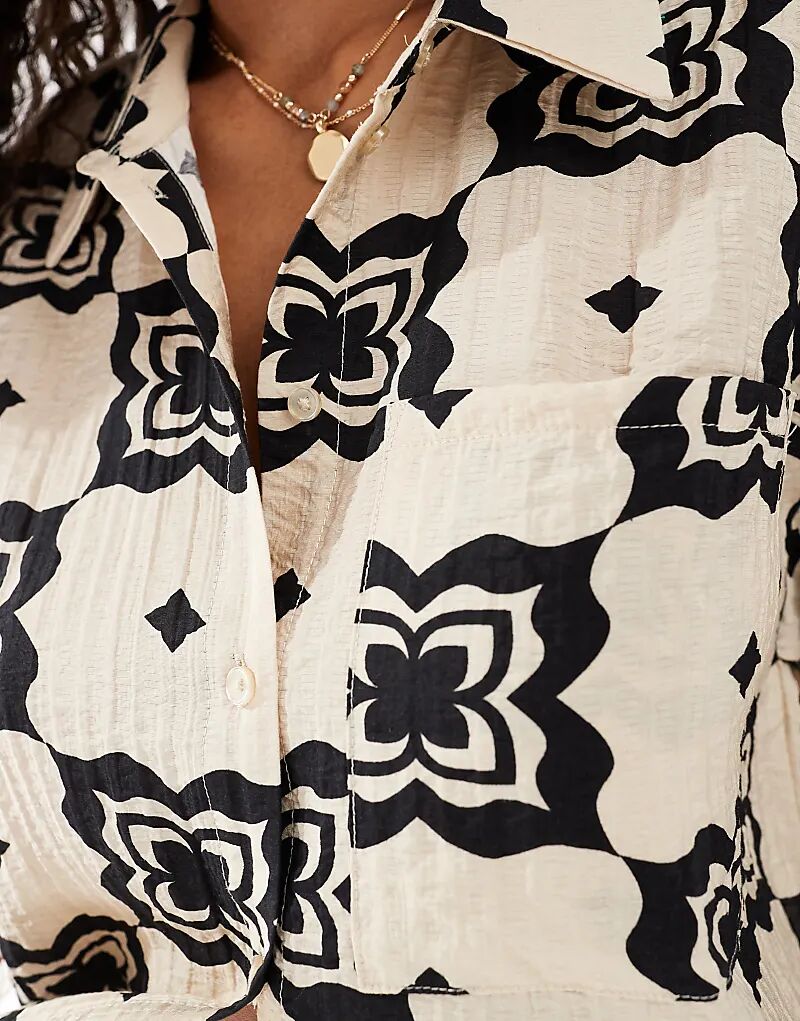 Рубашка свободного кроя Object с однотонным плиточным принтом