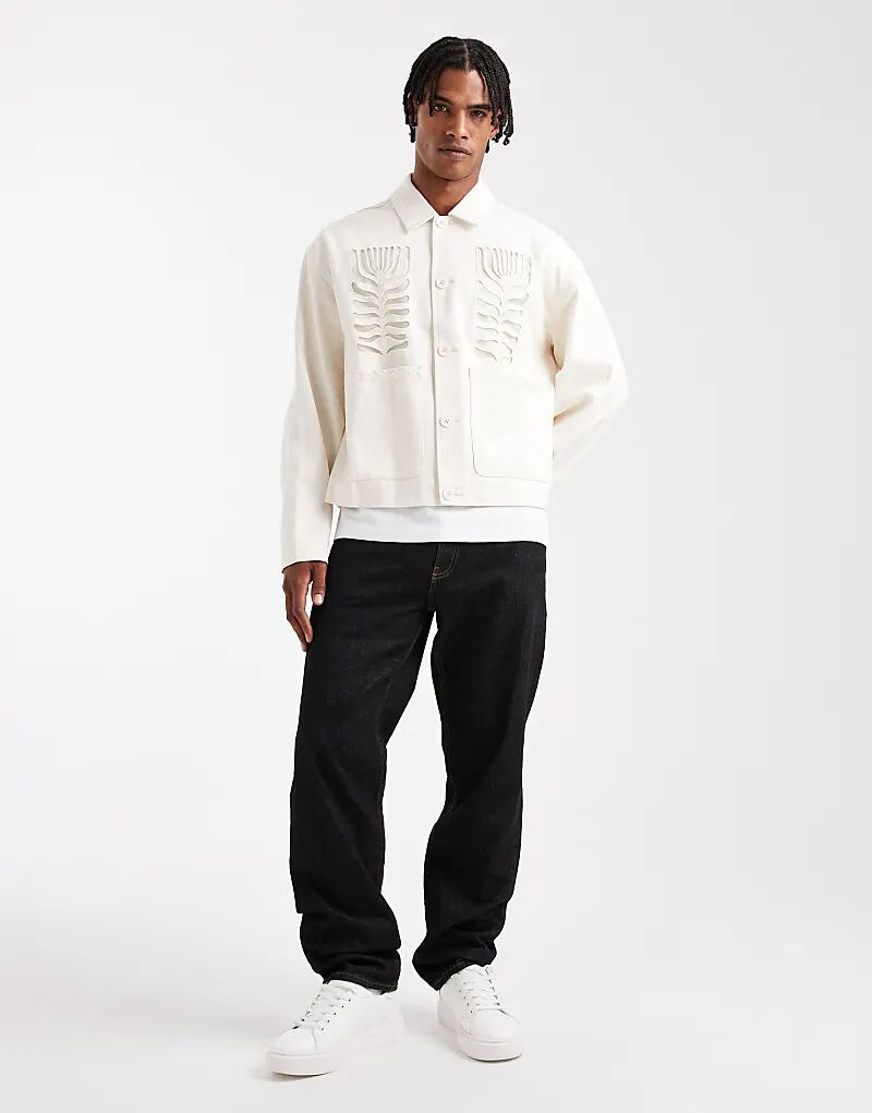 Белая куртка Харрингтон ASOS DESIGN с вышивкой