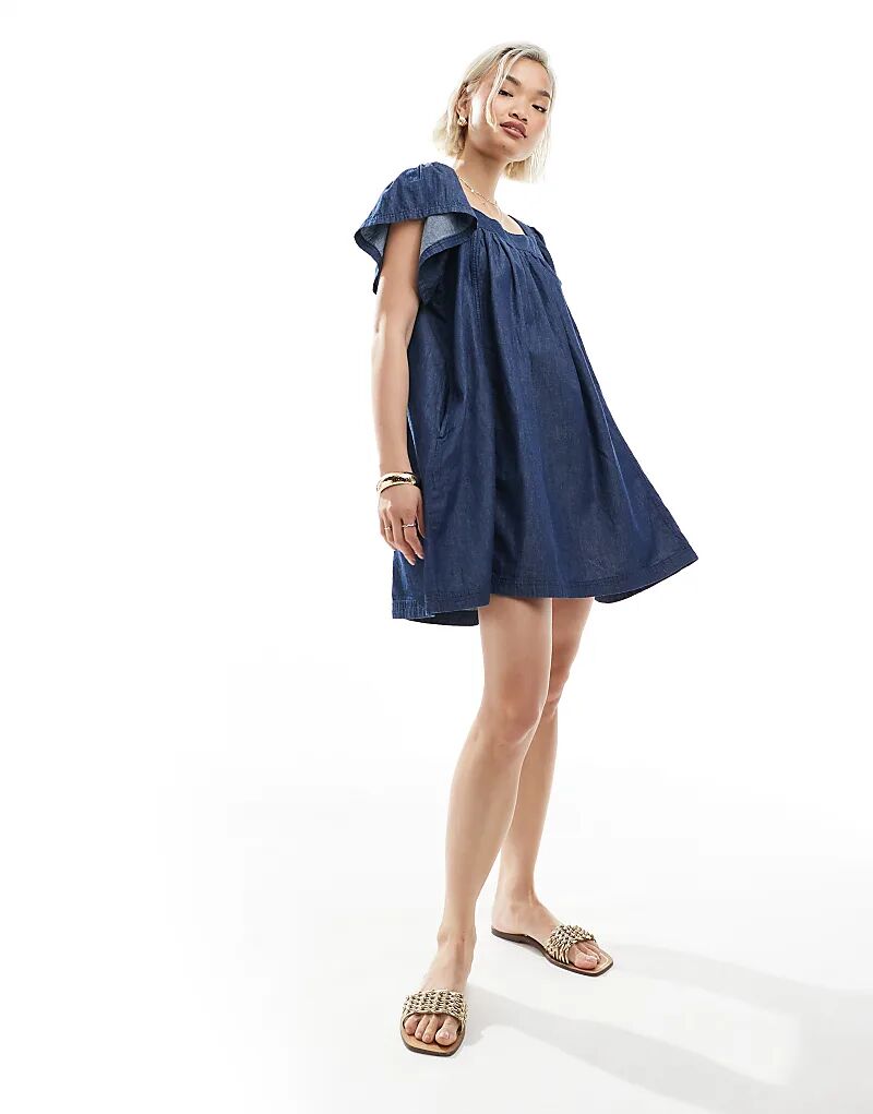 Мини-платье Miss Selfridge из шамбре цвета индиго