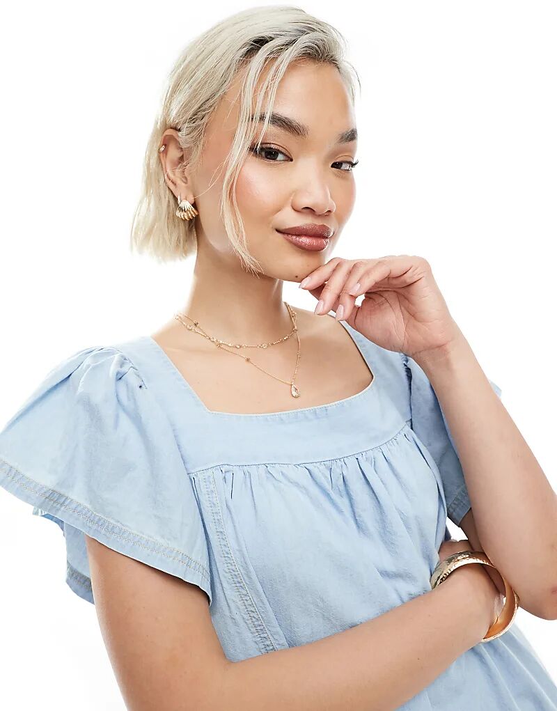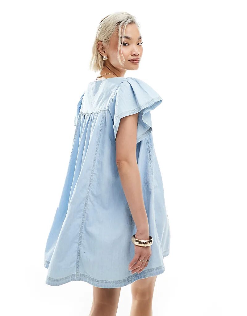 Мини-платье Miss Selfridge из шамбре в отбеленном цвете