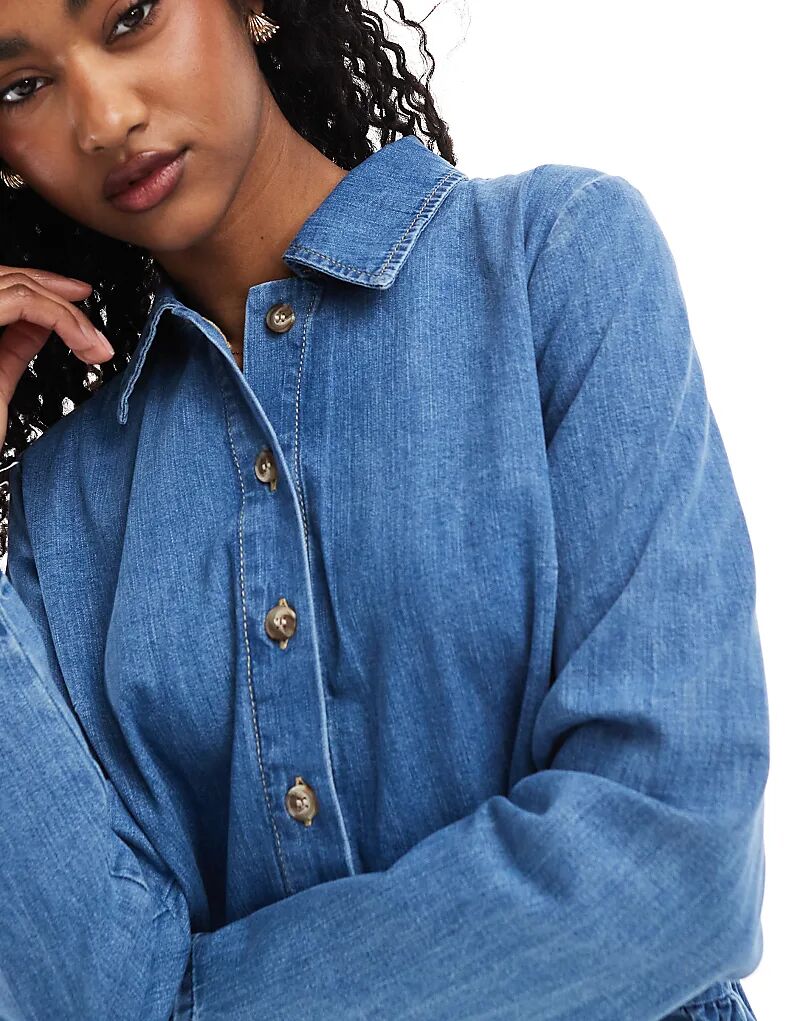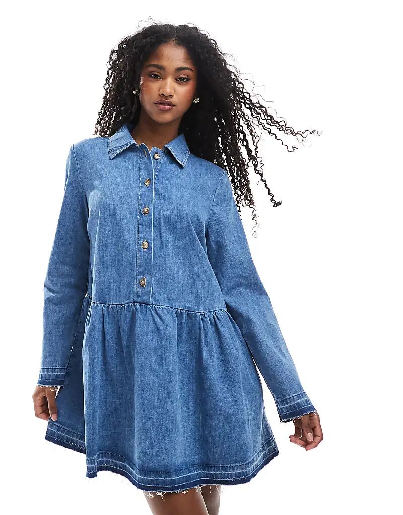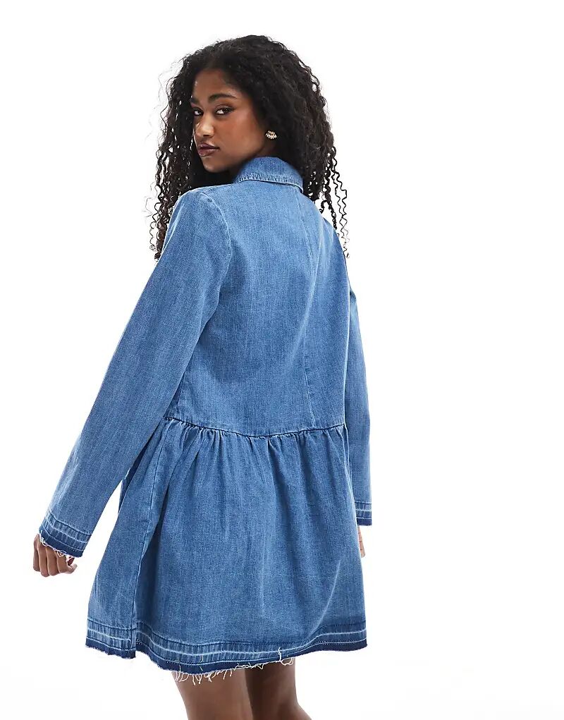 Джинсовое мини-платье ASOS DESIGN с заниженной талией, средне-синего цвета