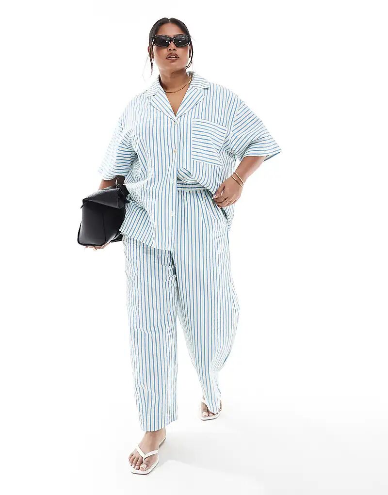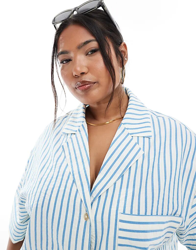 Рубашка из сирсакера ASOS DESIGN Curve в синюю полоску