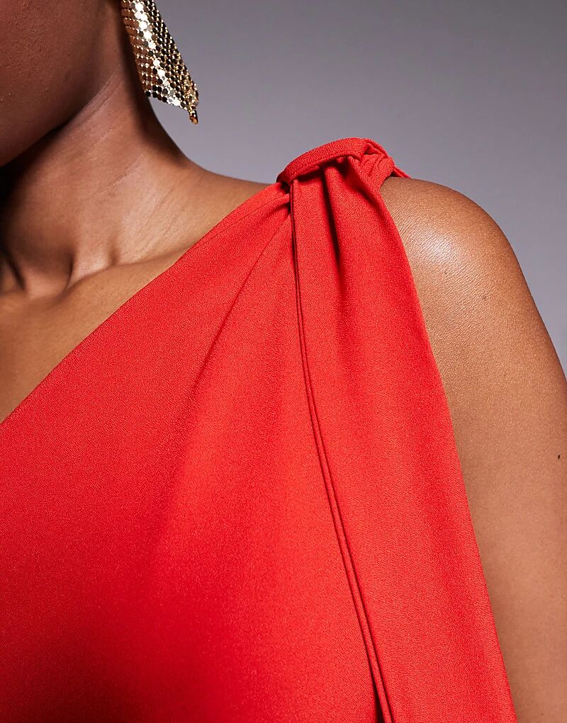 Платье макси Vesper на одно плечо с воротником в красном цвете
