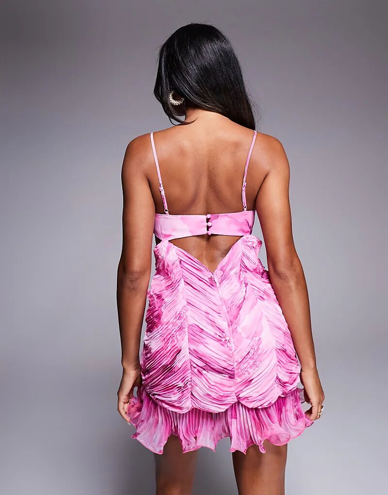 Мини-платье ASOS LUXE с принтом и сборками, размытым цветочным принтом