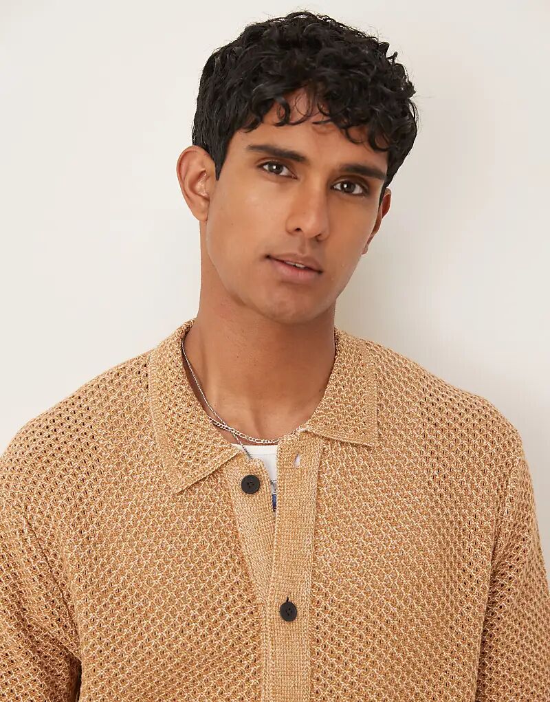 Рубашка крючком Selected Homme бежевого цвета