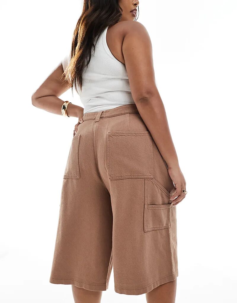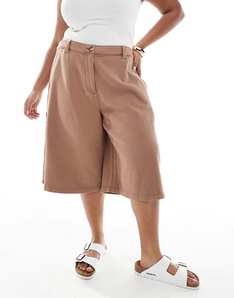 Длинные шорты с вставками ASOS DESIGN Curve цвета мокко, стираные
