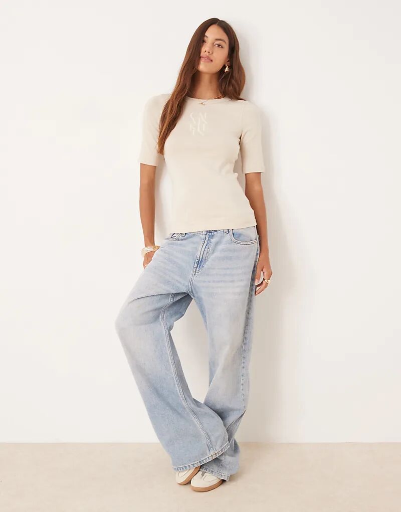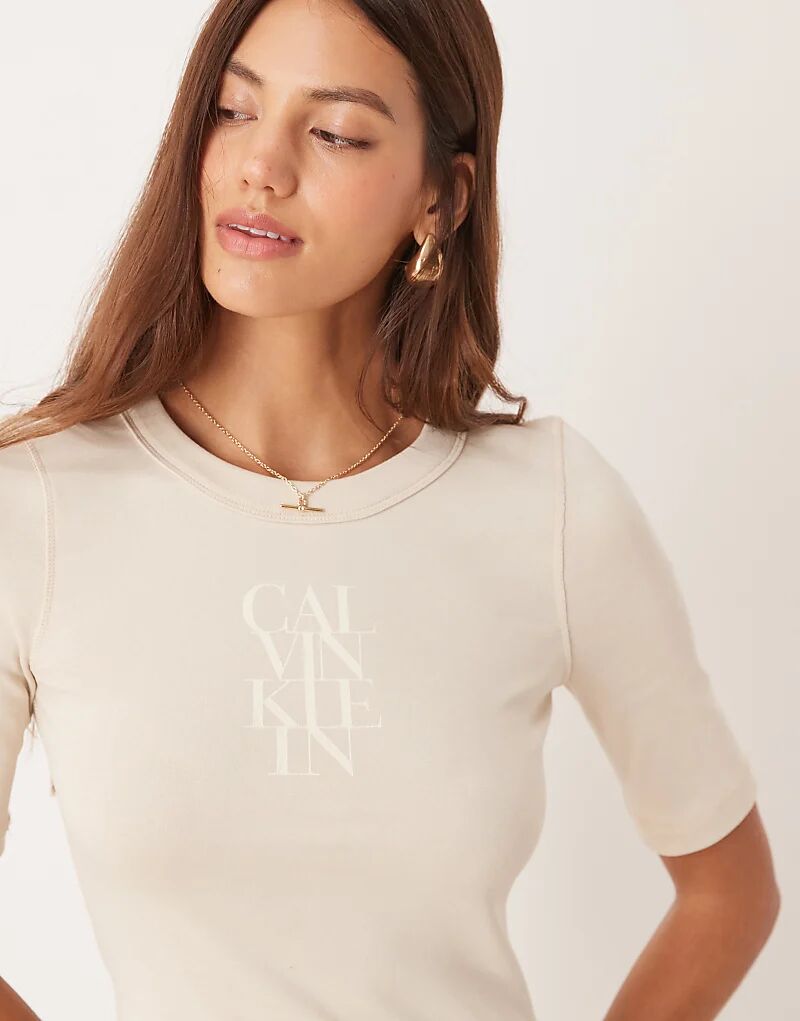 Топ в рубчик с логотипом Calvin Klein Jeans бежевого цвета