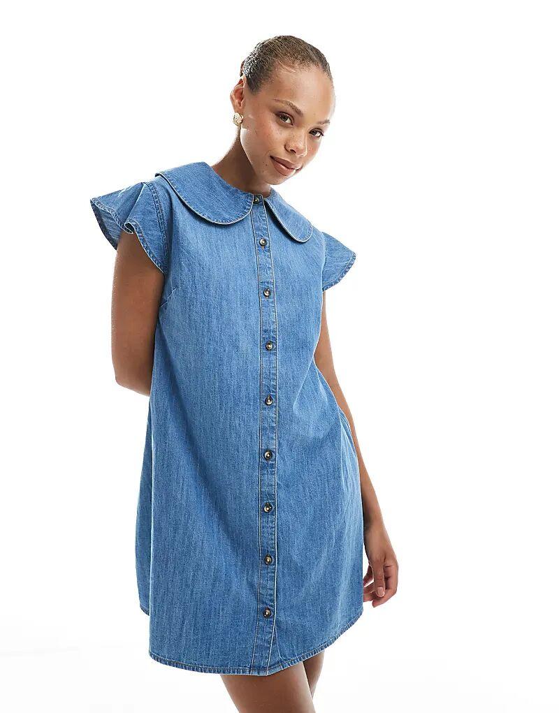 Джинсовое платье-бэби-долл Miss Selfridge синего цвета