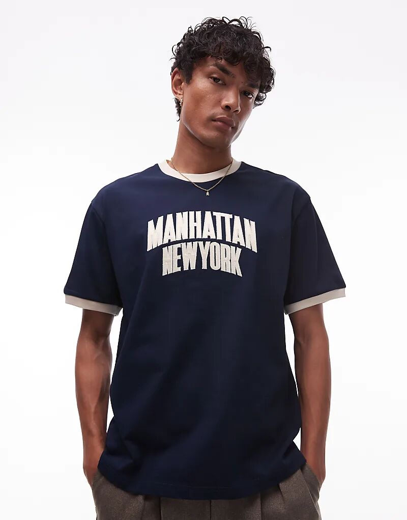 Футболка Tommy Jeans Manhattan Ringer темно-синего цвета