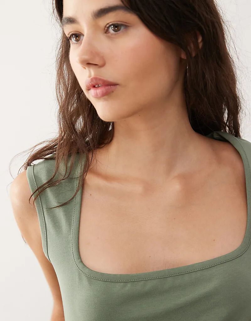 Топ COLLUSION с квадратным вырезом цвета хаки