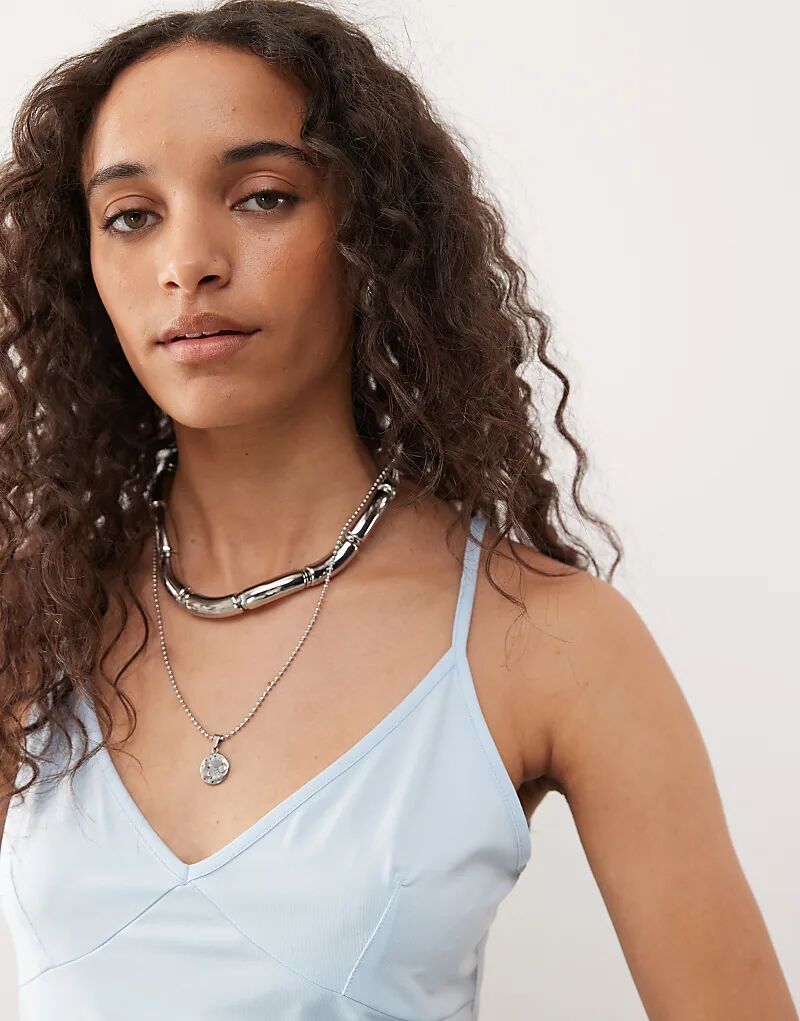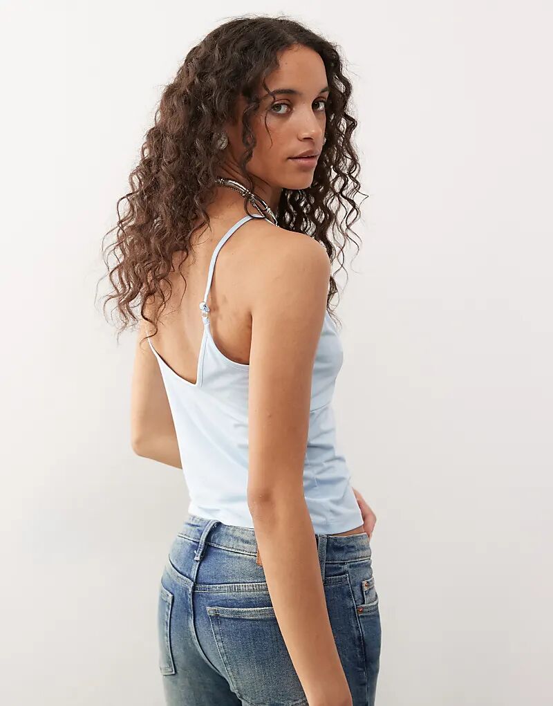 Топ COLLUSION с глубоким V-образным вырезом синего цвета