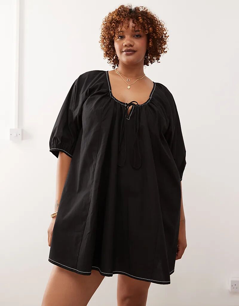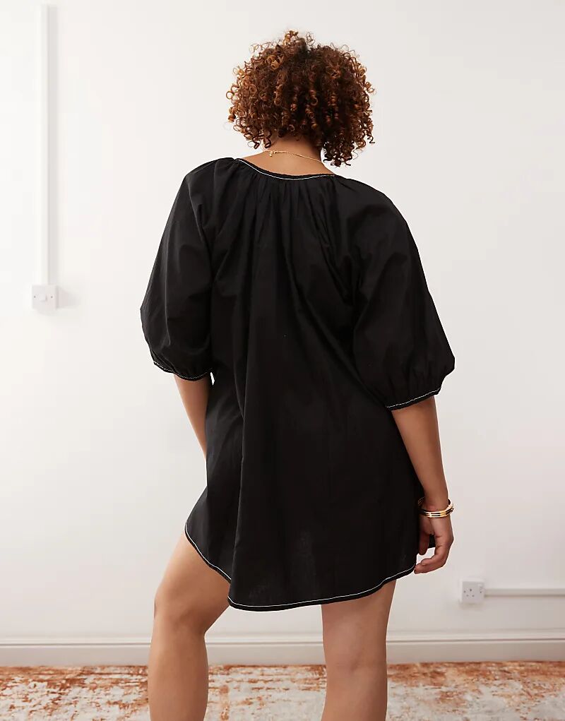 Платье-рубашка мини с рукавами-фонариками COLLUSION Plus черного цвета