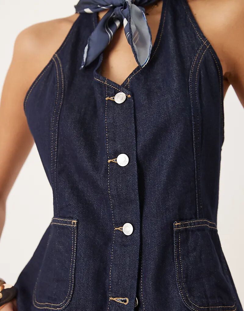 Джинсовый жилет ASOS DESIGN с халтер-воротом