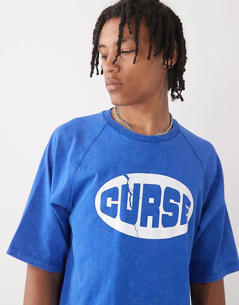 Футболка COLLUSION с принтом реглан синего цвета