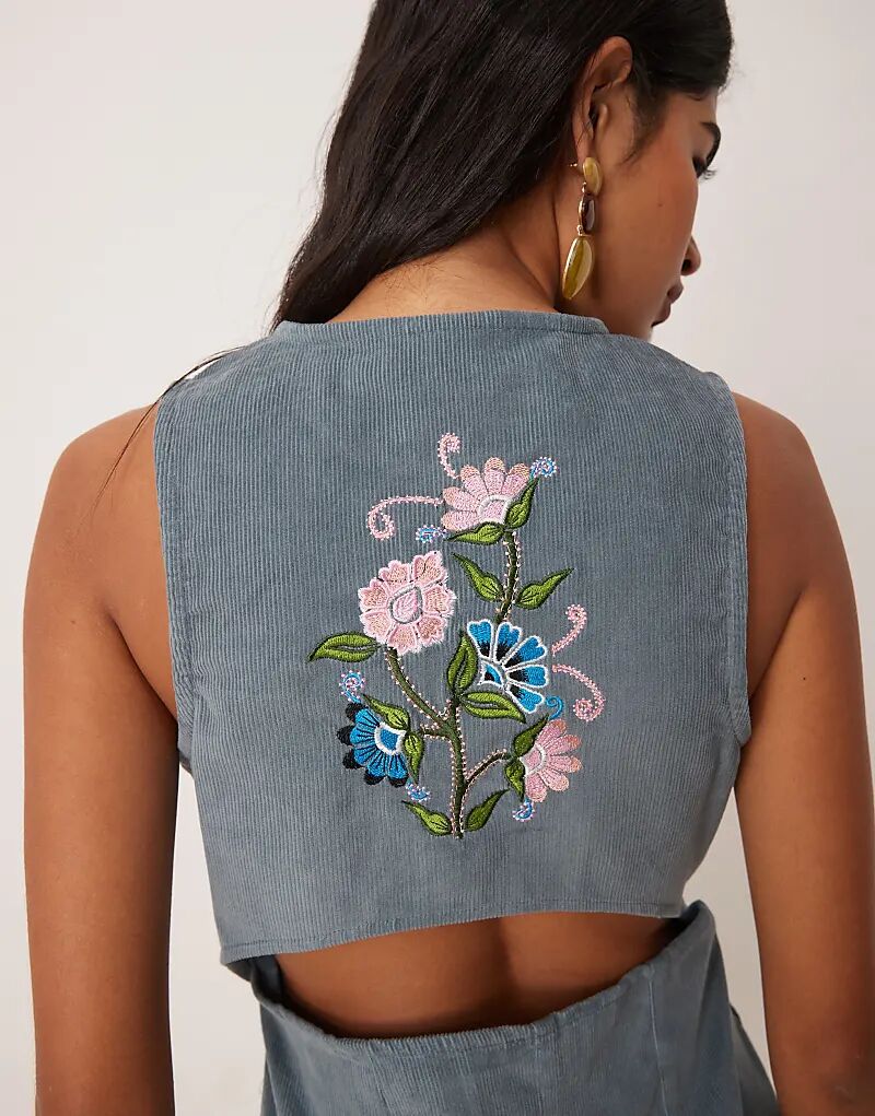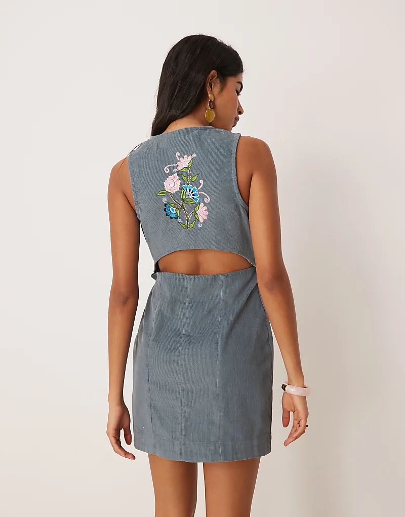 Вельветовое мини-платье с вышивкой ASOS DESIGN синего цвета