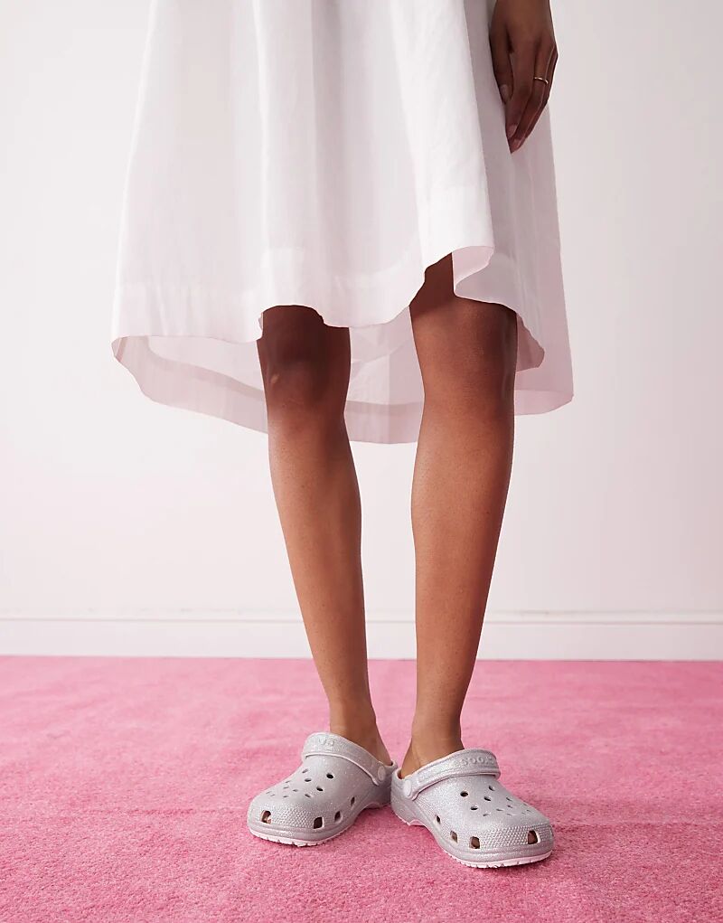 Классические блестящие сабо Crocs белого цвета