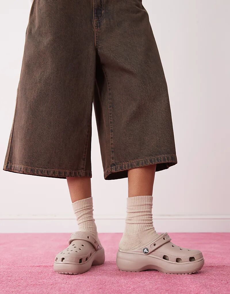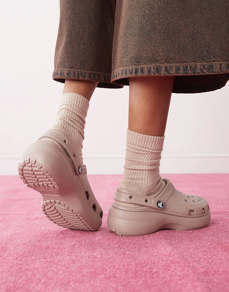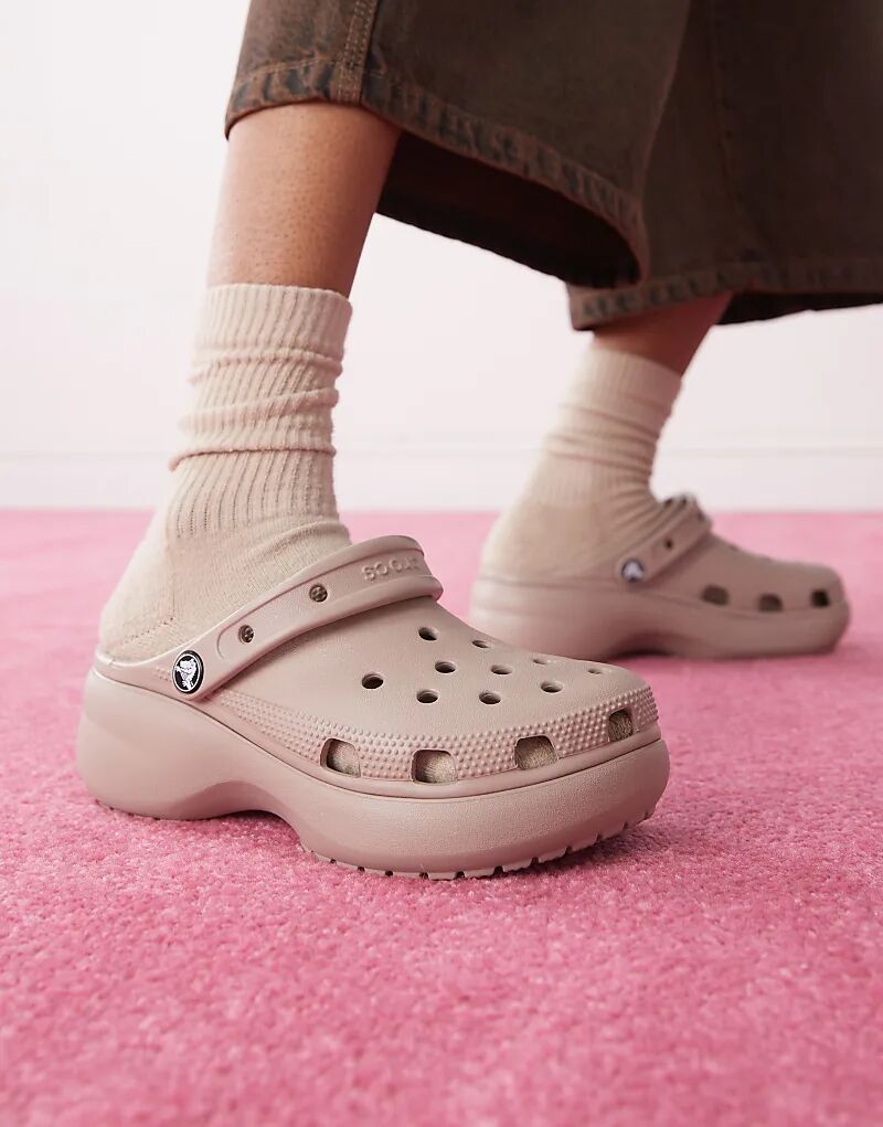 Классические сабо на платформе Crocs серо-коричневого цвета