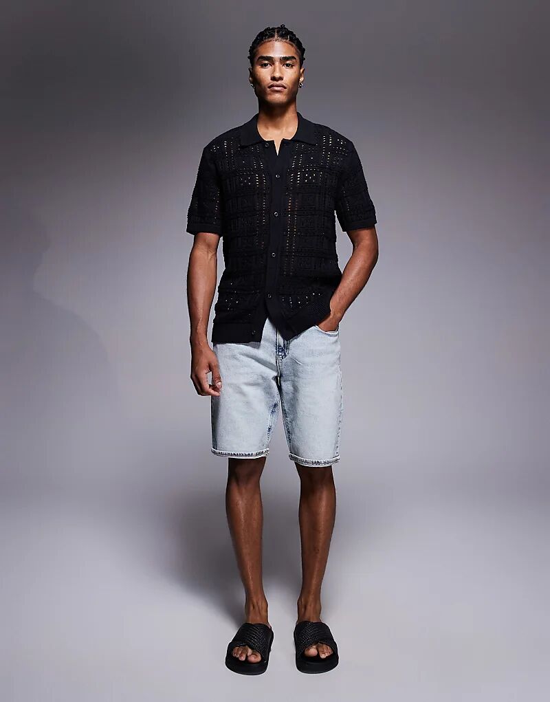 Вязаная крючком рубашка River Island черного цвета