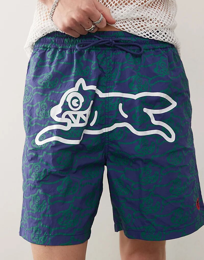 Плавки-шорты ICECREAM с принтом бегущей собаки, синие