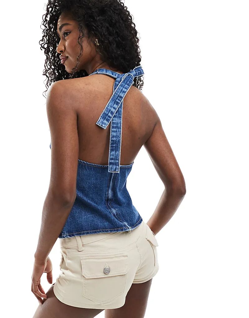 Джинсовый топ ASOS DESIGN с халтер-воротом и вытачками