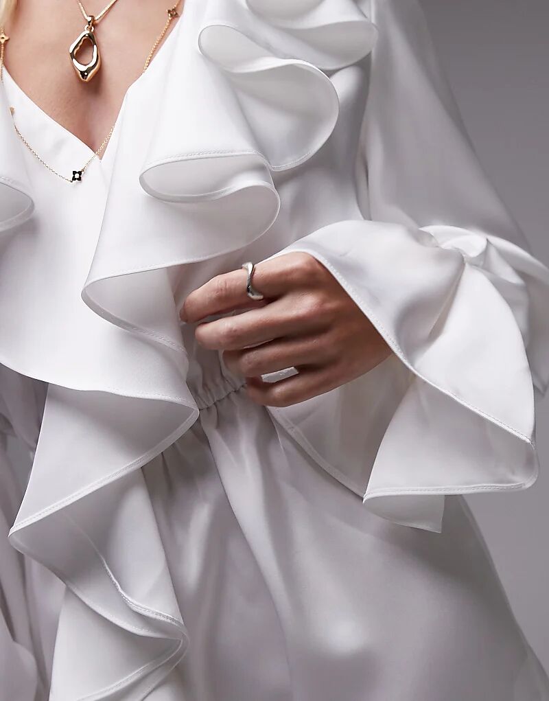 Мини-платье в стиле бохо WeWoreWhat белого цвета с оборками