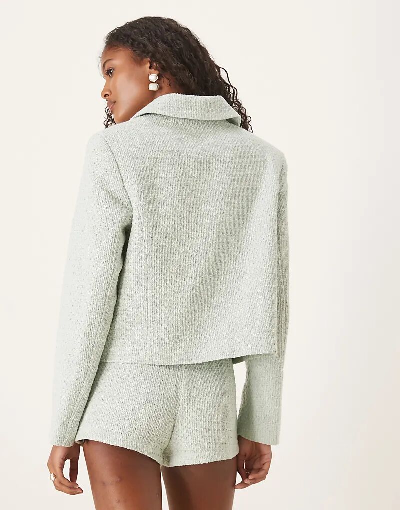 Пиджак-букле ASOS DESIGN, приталенный в цвете шалфея